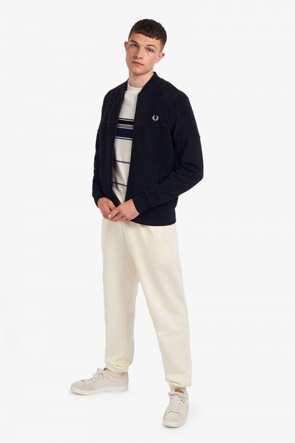 A key part of our heritage, the track jacket is a recognisable Fred Perry icon and one of our most enduring pieces. Taken from a time when bold colours and man-made fibres were first introduced to team kits, the track jacket was later adopted into British subculture, taking centre stage in the Britpop era. Since then, it’s never lost its appeal. Revived in a cotton rich towelling with a cotton loopback bottom panel, our latest version borrows a neckline from our tennis bomber. Pure Fred Perry.